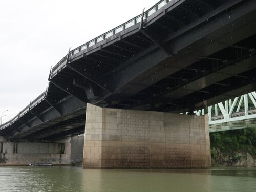 いぬやまばしのとなりにくろいはしがある。きそがわうかいがおこなわれるこのばしょで、はしのいろもうかいのうのいろにしてあるだ。 かたちも、うがはねをひろげたようになっとる。 うかいばしだ。 きそがわうかいのやかたぶねで、うかいばしをくぐる。 ち…