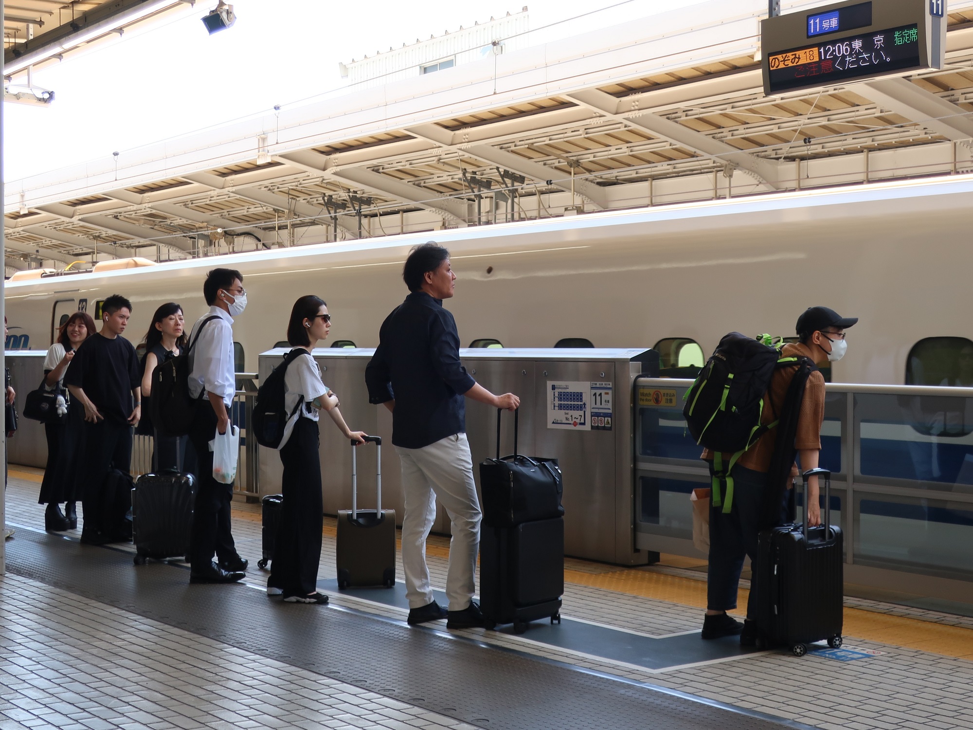 2024-09-08 とうきょういきのぞみごう しんかんせん しんおおさかは27ばんのりばにとうきょういきのぞみごうがはいってきて、まっとったひとたちがのりこんでいく。 (2024ねん7がつようか、げつようび、へいじつ)
